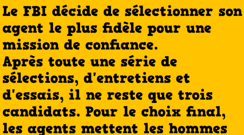 Le FBI décide de sélectionner son agent le plus fidèle pour une mission de confiance.