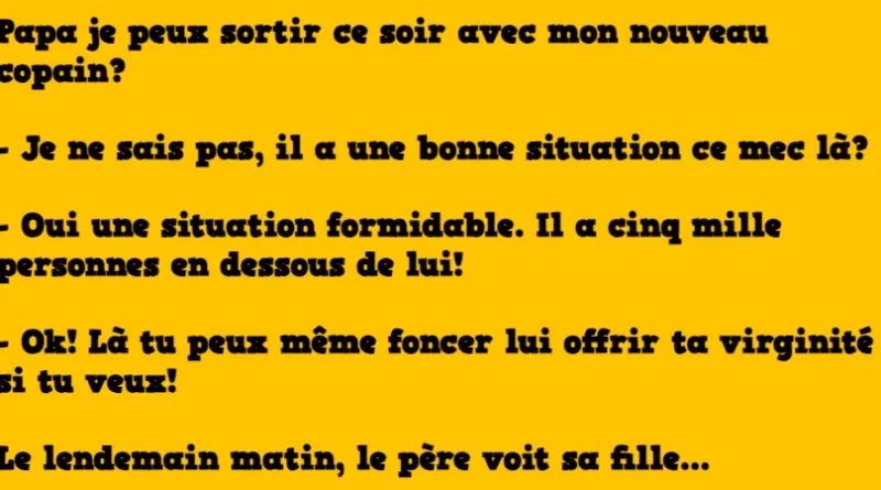 Le lendemain matin, le père voit sa fille rentrer tout sourire. Elle lui dit: