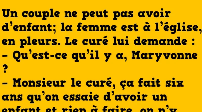 Un couple ne peut pas avoir d’enfant; la femme est à l’église, en pleurs. Le curé lui demande :
