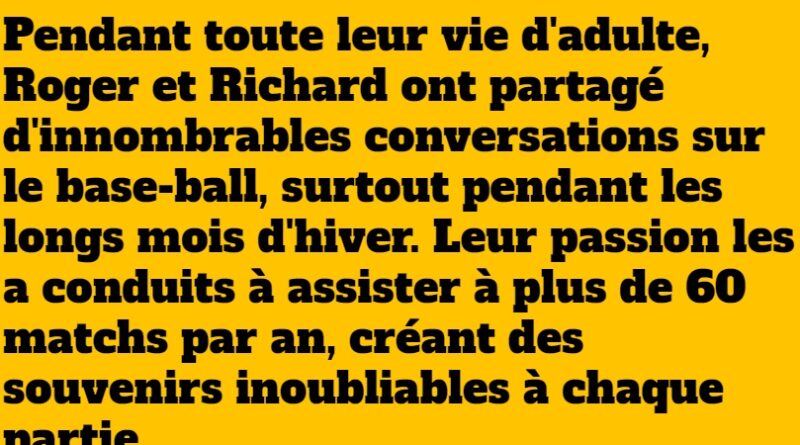 Roger et Richard sont deux des plus grands fans de base-ball en Amérique. Leur passion pour ce sport a transcendé les années, les saisons, et même les limites de la vie elle-même. Leur histoire est un témoignage émouvant de l’amitié et de l’amour inconditionnel pour le base-ball.
