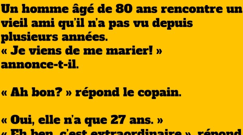 Un homme âgé de 80 ans rencontre un vieil ami qu’il n’a pas vu depuis plusieurs années.